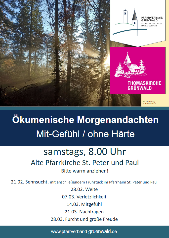 Alle TermineFragen und Anregungen zur Webseite können Sie gerne an webmaster@pfarrverband-gruenwald.de schicken.