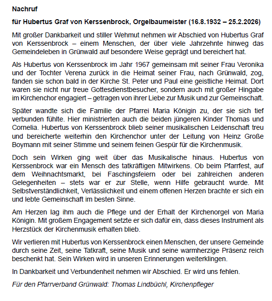 Requiem für Wilhelm Otto-Ernst Holthaus in Maria KöniginMaria Königin KircheSamstag, den 25.04.2026 um 13:30 Uhrmehr