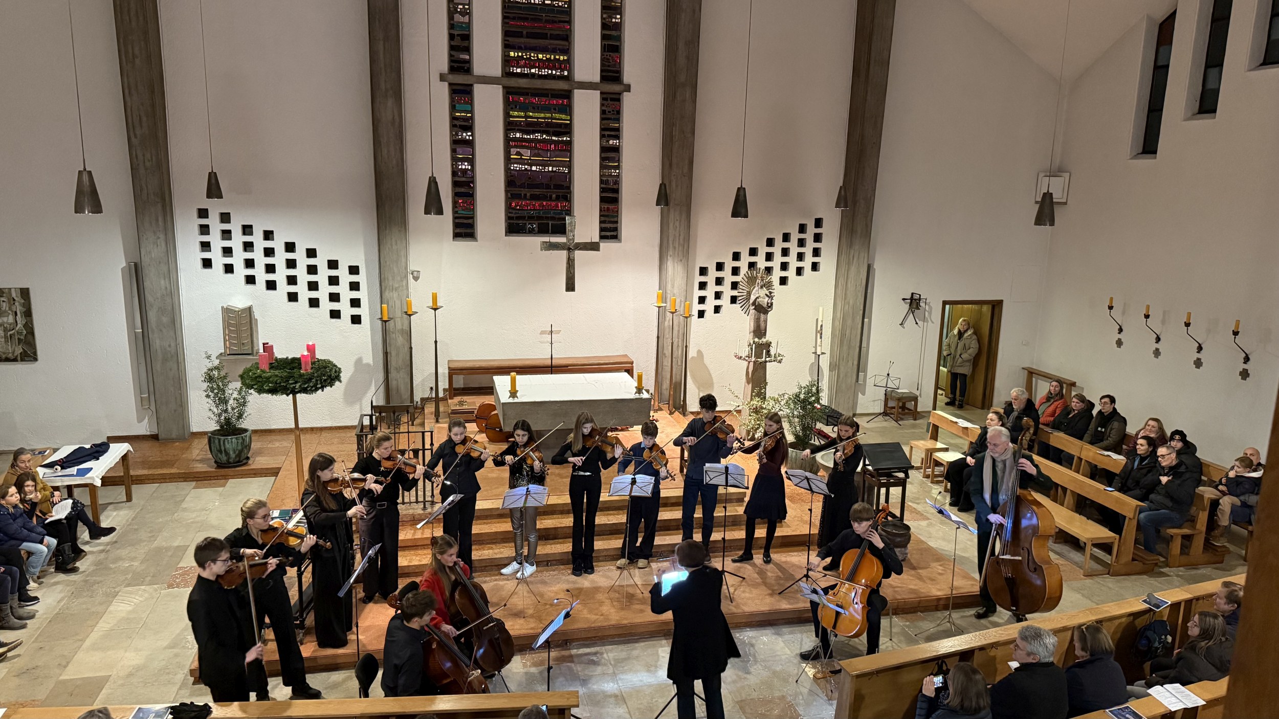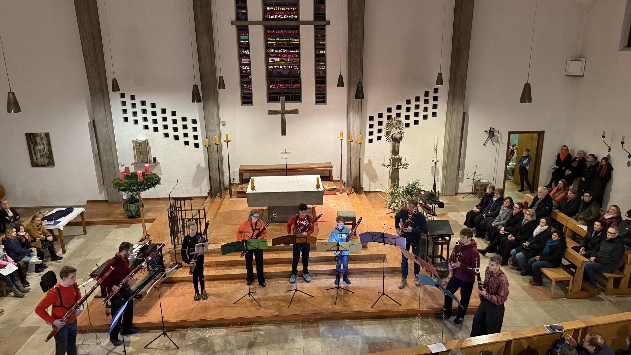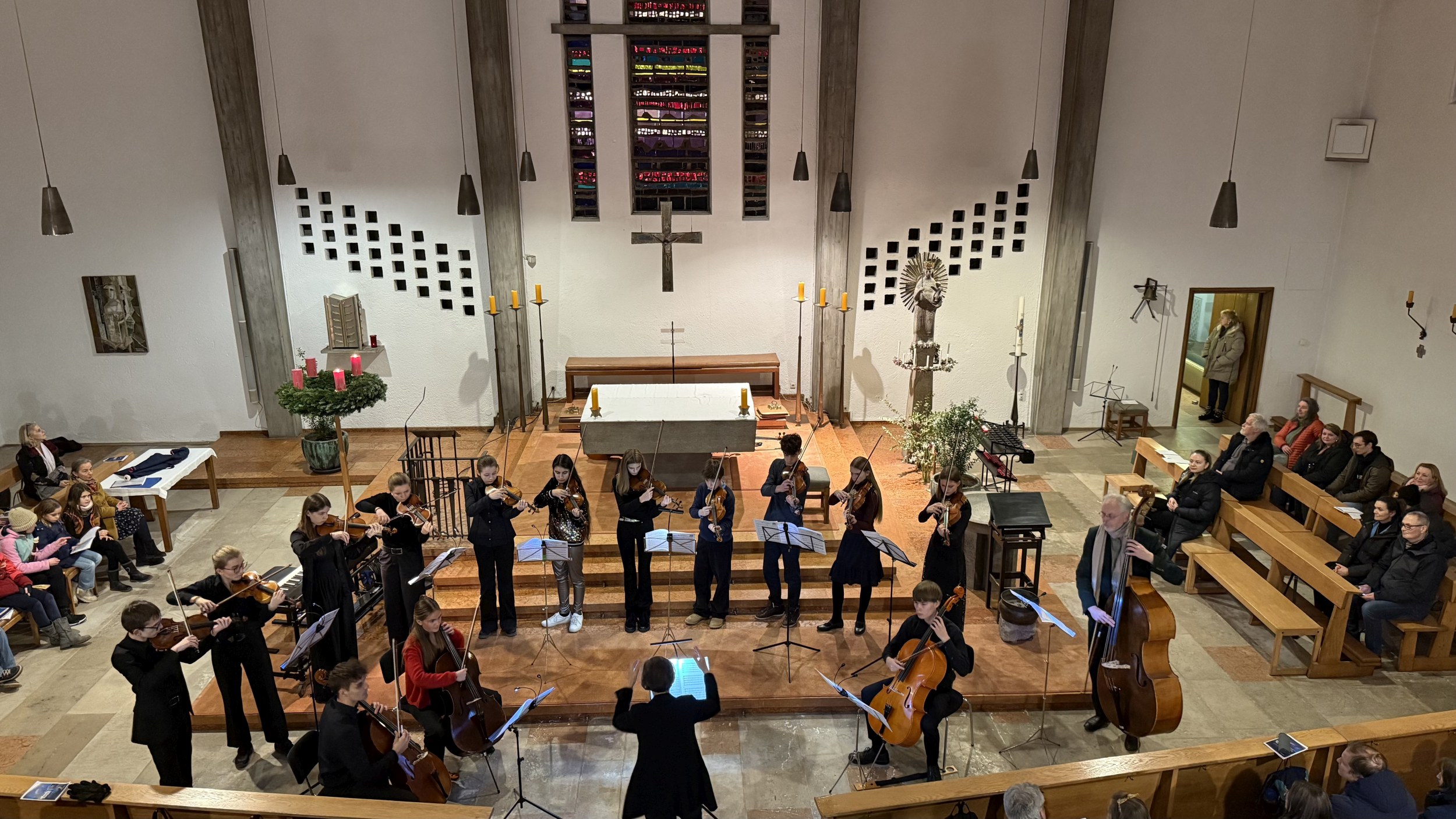 Am 12. Dezember fand ein Adventskonzert in der Kirche Maria Königin statt, das von der Musikschule Grünwald gestaltet wurde. Zu Beginn begrüßten Pfarrer Hagl und der Leiter der Musikschule, Herr Lentz, die Anwesenden.