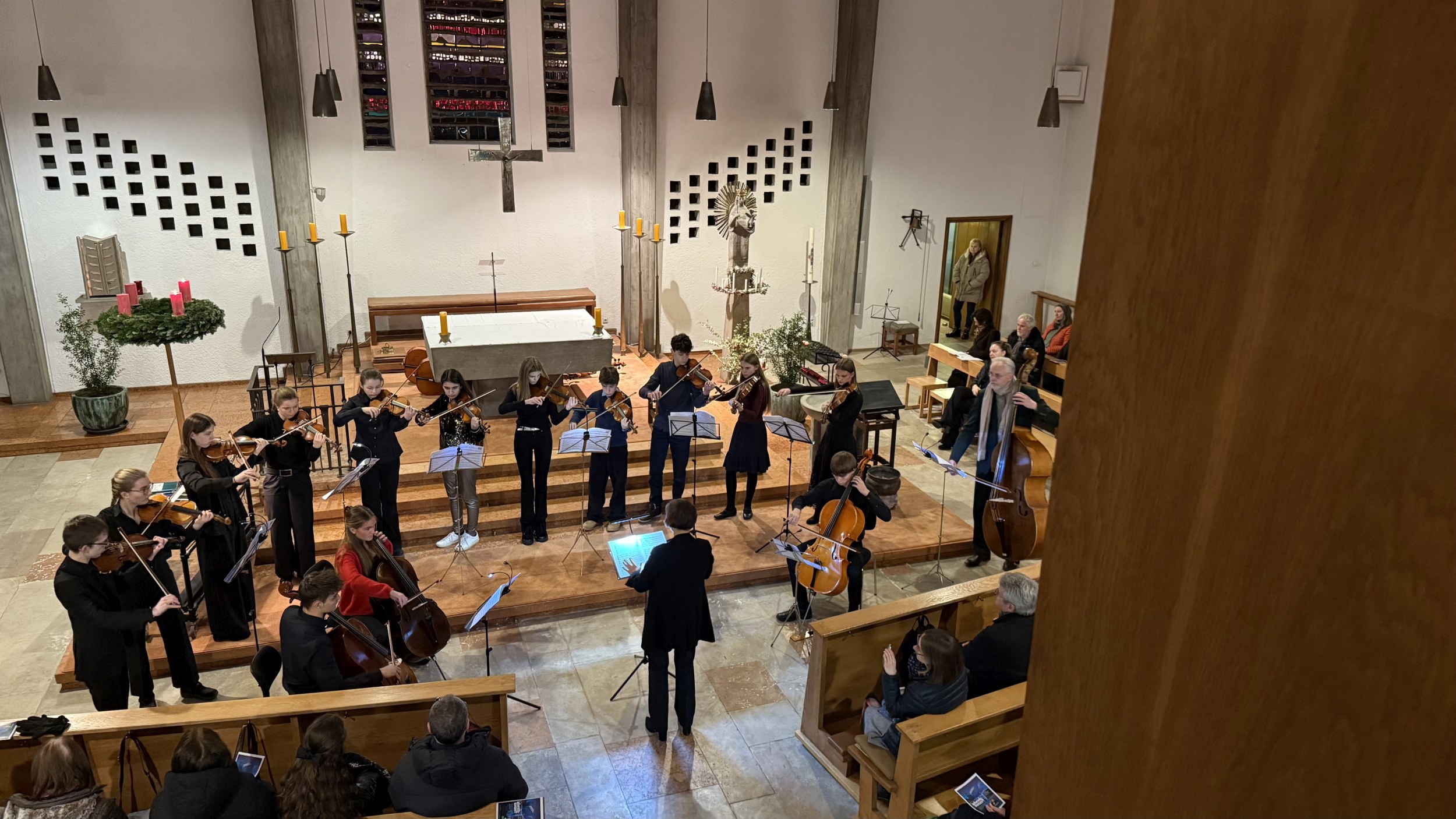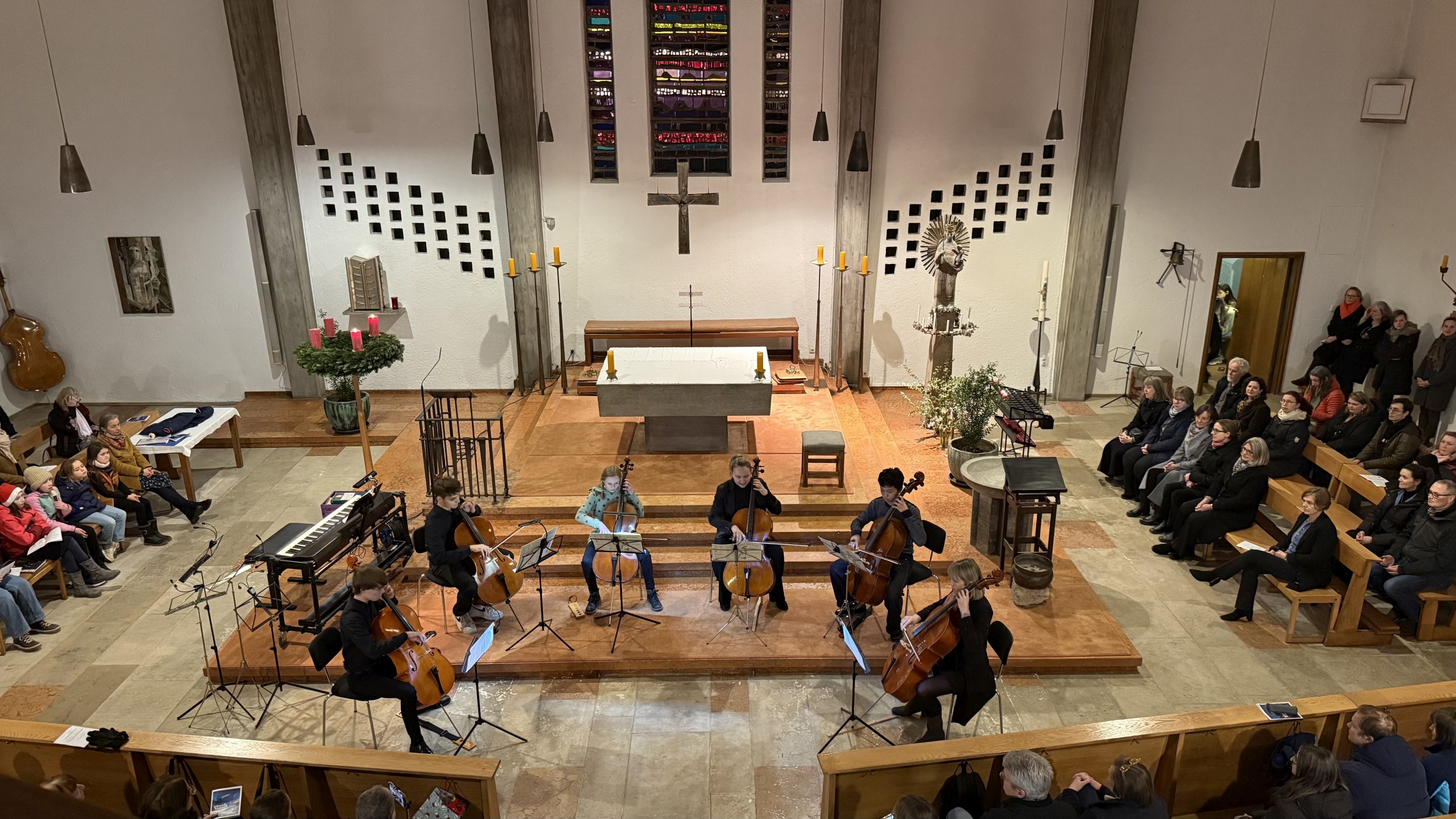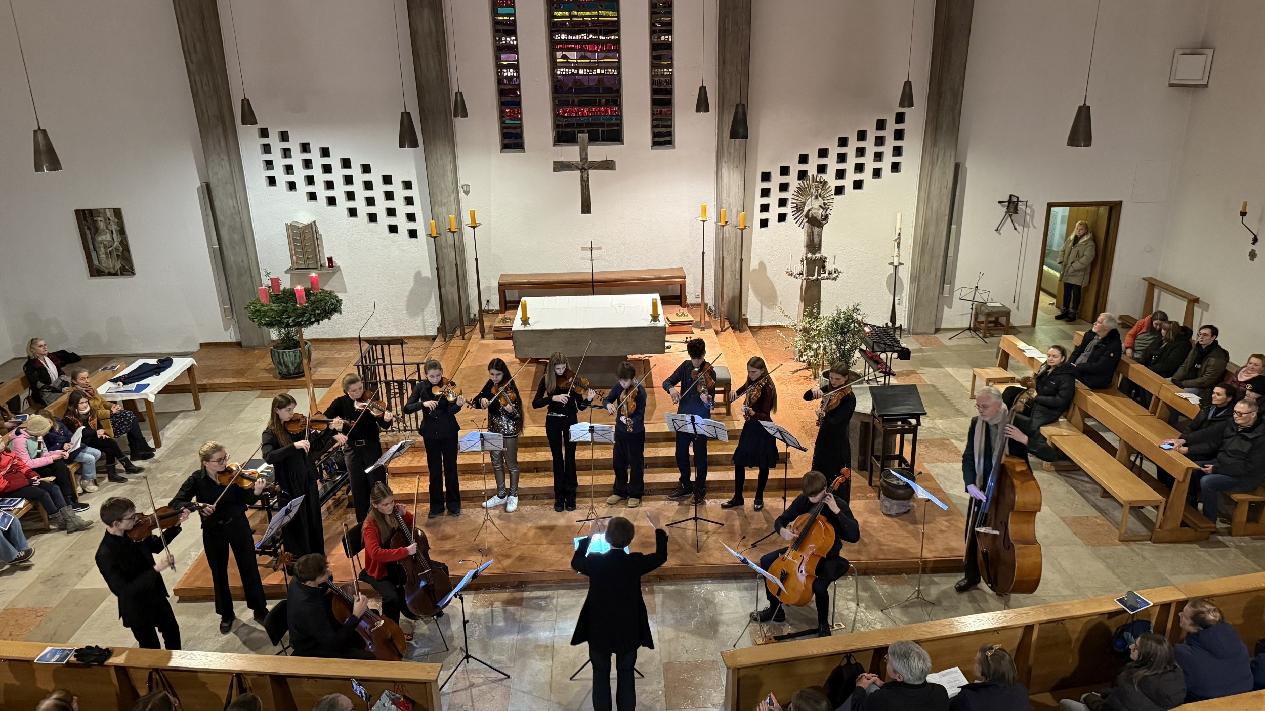 Am 12. Dezember fand ein Adventskonzert in der Kirche Maria Königin statt, das von der Musikschule Grünwald gestaltet wurde. Zu Beginn begrüßten Pfarrer Hagl und der Leiter der Musikschule, Herr Lentz, die Anwesenden.