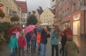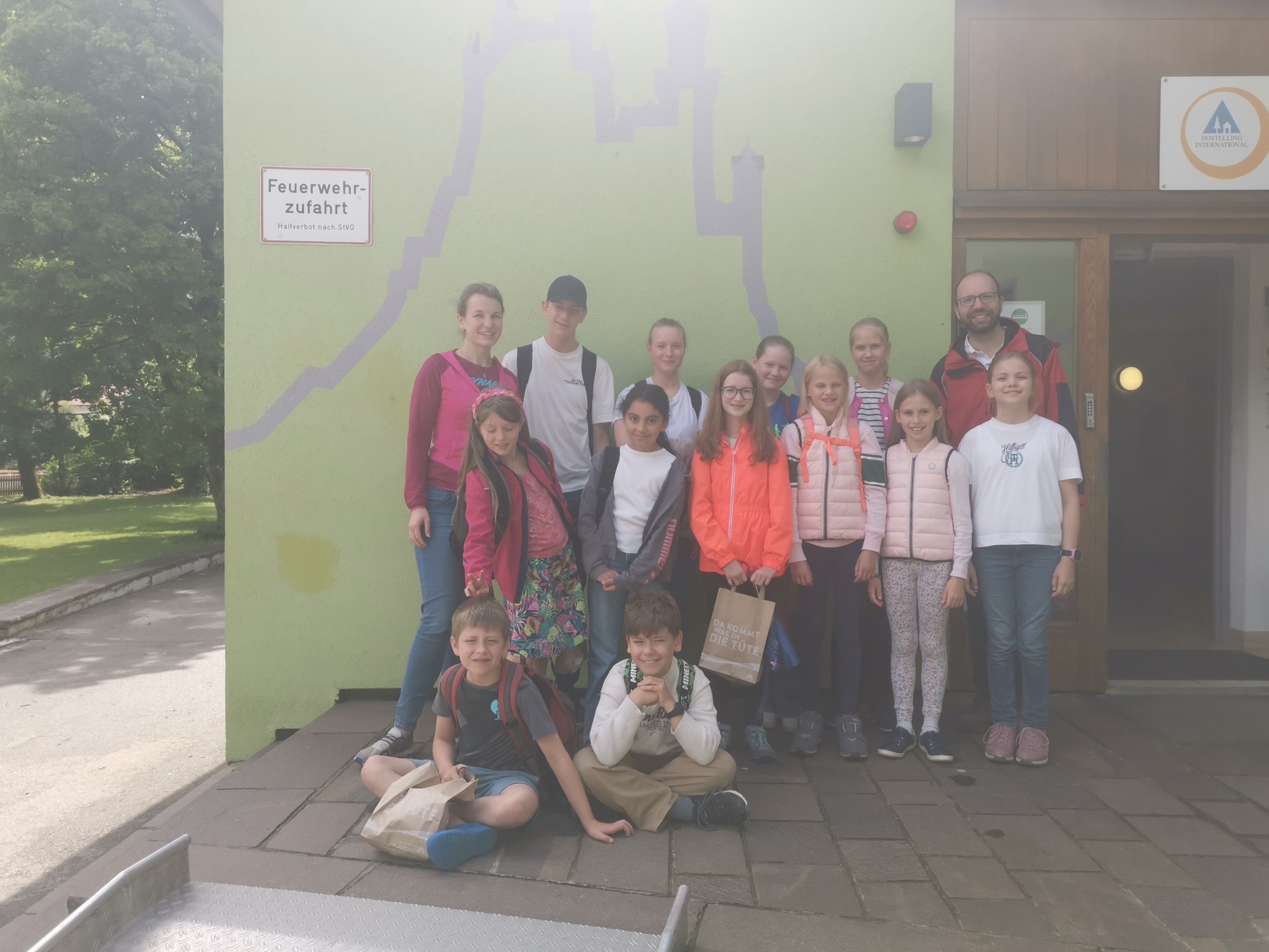 Jedes Jahr fahren wir Minis irgendwo anders hin zum Ministranten Ausflug, um unsere Gemeinschaft zu stärken. Dieses Jahr ging es mit insgesamt 12 MinistrantInnen, Herrn Pfarrer Anton Hagl und Gemeindereferentin Caroline Auer nach Füssen. Dort haben wir viele Aktivitäten unternommen wie Schwimmen im Hallenbad und den Berg hoch wandern zum Schloss Neuschwanstein. Während der Wanderung wurden wir von einem starken Regenschauer nass, sodass wir triefend nass in das nächstgelegene Gasthaus gingen, uns komplett umziehen mussten und dann einen leckeren heißen Kakao genossen, um uns zu erwärmen. Da es an diesem Wochenende viel geregnet hatte, konnten wir viele Gemeinschaftsspiele in der Jugendherberge spielen, gut essen und die Zeit gemeinsam genießen. Bei der Heimfahrt hielten wir in Murnau bei Sonnenschein und blauem Himmel und genossen in der Fußgängerzone ein leckeres Eis, bevor es wieder zurück nach Grünwald ging. Ich (Ministrantin Elsa) komme jedes Jahr mit, weil es immer Spaß macht und ich viele nette Minis besser kennen lerne!